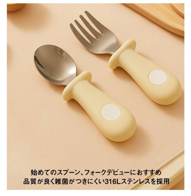 | くすみカラーのかわいいカトラリーセット。2組セット(4点) 品質が良く雑菌がつきにくい316Lステンレスを採用 食品安全基準を満たしたプラチナシリコンを採用 小さな手でも持ちやすく食べやすい 出っ張りがあるからテーブルに置く時も先端がつかずに清潔 始めてのスプーン、フォークデビューにおすすめ かわいい箱に入っているのでギフトにもピッタリ | |