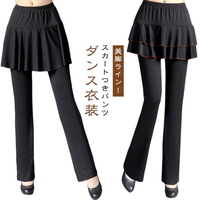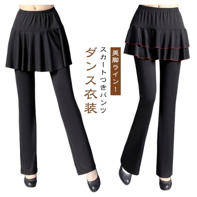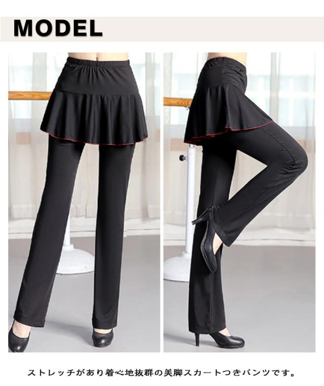 パンツ スカート付き レディース 美脚パンツ ダンス衣装 スカート付きパンツ 涼しい レギンス スカート ストレッチ 薄手 一体型 ヨガウェア ヨガパンツ 社交ダンス ダンスウェア ピラティス 部屋着 ウォーキング