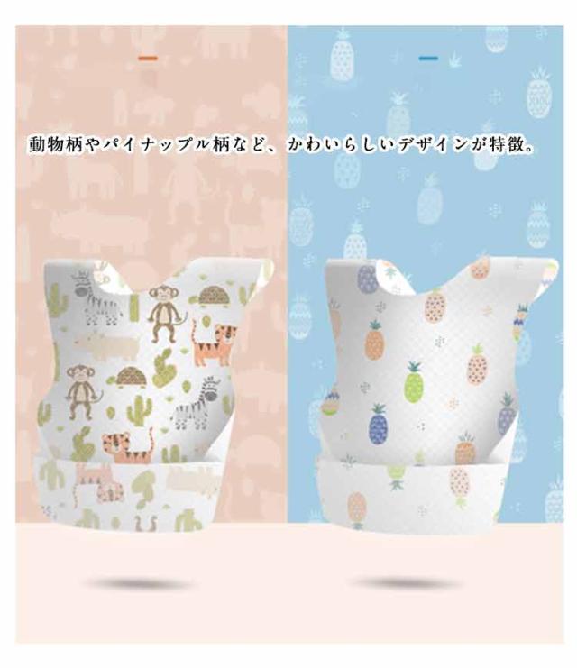 | 【可愛い動物柄&パイナップル柄】【使い捨て食事エプロン】【50枚セット】【防水】 ペーパービブよりも吸水力に優れた不織布のエプロンです。 首から落ちにくくズレにくい固定テープ付き。 破れにくい3層構造、しっかりとした不織布で作られており、離乳食の時期や食べこぼしの心配なし。 動物柄やパイナップル柄など、かわいらしいデザインが特徴。 お出かけや外食時にも便利な携帯用で、持ち運びが簡単。 裏には防水・漏れ防止の防水フィルムがついていますので、ミルク、お湯や水を飲む時も赤ちゃんの服を濡らす心配がありません。防水で通気性がよく、夏に着けても蒸し暑く感じません。 お気に入りの可愛いお洋服が汚れないように設計をさせていただきました。 男の子にも女の子にもぴったりなアイテムで、出産祝いにも最適です。 大容量50枚入りで、兄弟姉妹で長く使えるお得なアイテムです。 | |