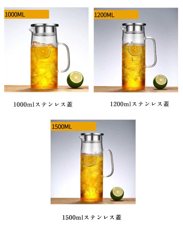 ピッチャー ガラスピッチャー お茶ポット ガラスポット ガラスケトル 直火 1200ml 1000ml ティーポット ガラスピッチャー 耐熱ガラス 1500ml ガラス 大容量 直火電気ケトル対応 ホウケイ酸ガラス 麦茶ポット 冷水ポット冷水筒 麦茶入れ 水だし