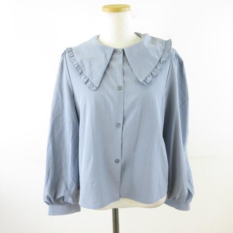 【中古】ハドソンハニー Hudson honey シャツ ブラウス 長袖 青 くすみブルー L *T819 レディース