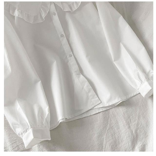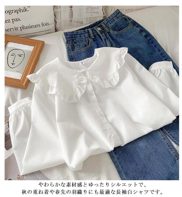無地 シャツ 秋服 レディース ゆったり 春服 大きいサイズ 長袖 シャツブラウス S-2XLサイズ フリル襟シャツ かわいい 春秋 ナチュラル シンプル 体型カバー 重ね着 ルーズフィット 白 トップス カジュアルシャツ