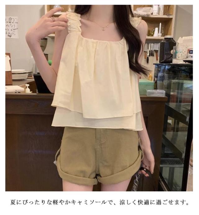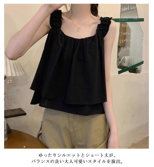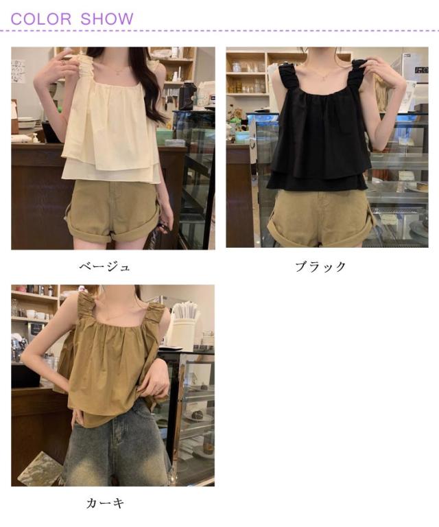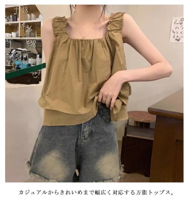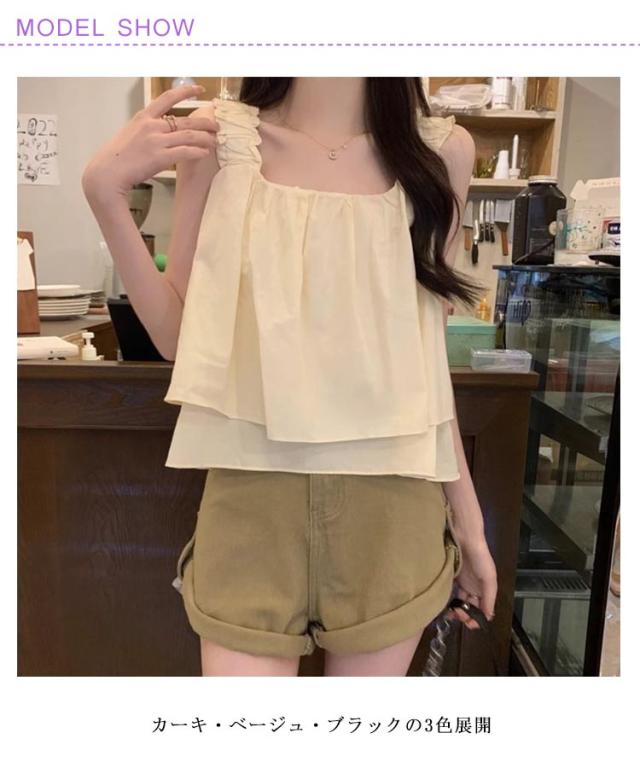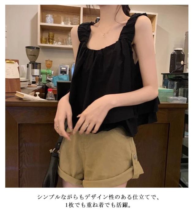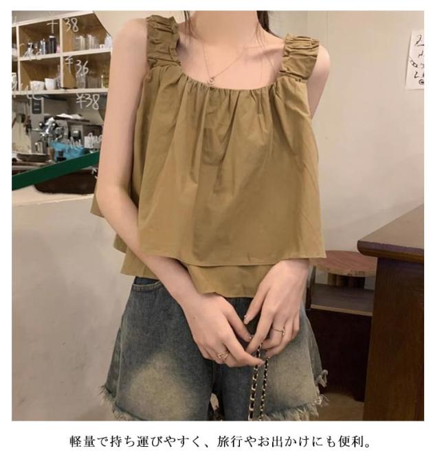 | ゆったりシルエット×ショート丈のトップス カーキ・ベージュ・ブラックの3色展開 夏にぴったりな軽やかキャミソールで、涼しく快適に過ごせます。 ゆったりシルエットとショート丈が、バランスの良い大人可愛いスタイルを演出。 シンプルながらもデザイン性のある仕立てで、1枚でも重ね着でも活躍。 カジュアルからきれいめまで幅広く対応する万能トップス。 軽量で持ち運びやすく、旅行やお出かけにも便利。 | |