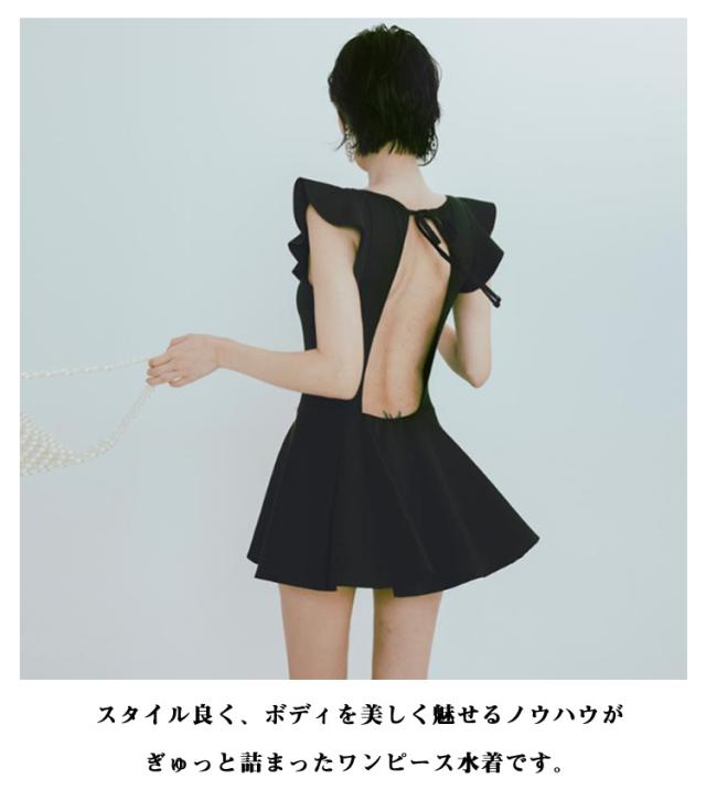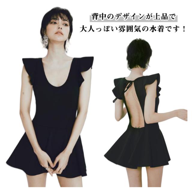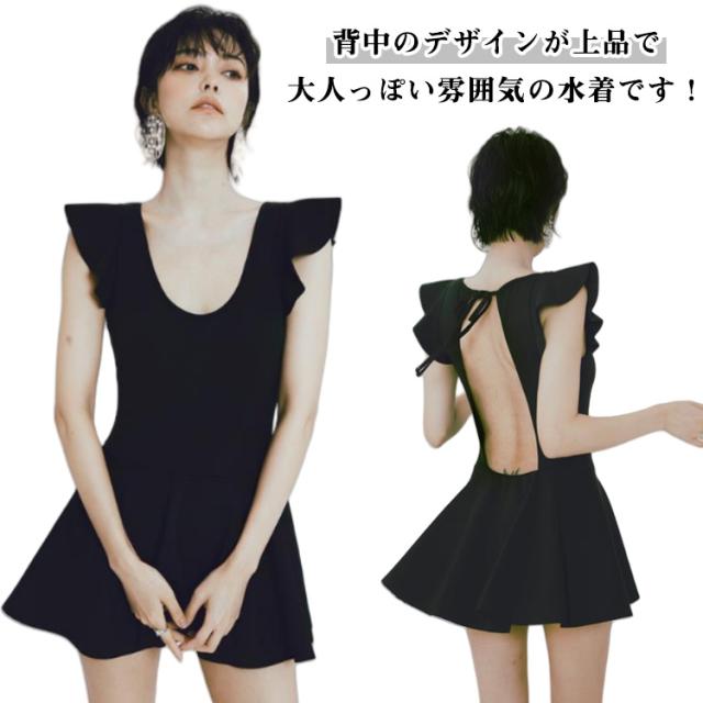 レディース フレア 20代 ぽっちゃり 体型カバー水着 水着 水着 ワンピース オールインワン 女性 30代 セクシー バックシャン 胸元 お腹 お尻 太もも カバーアップ 40代 黒 パッド付き M L XL 露出控えめ 可愛い 着痩せ 韓国風