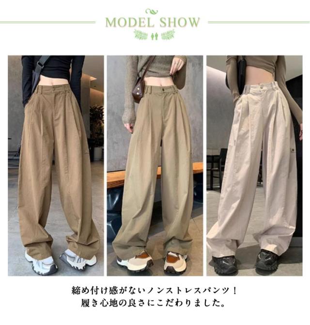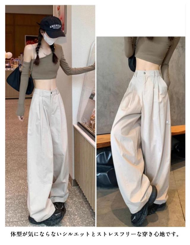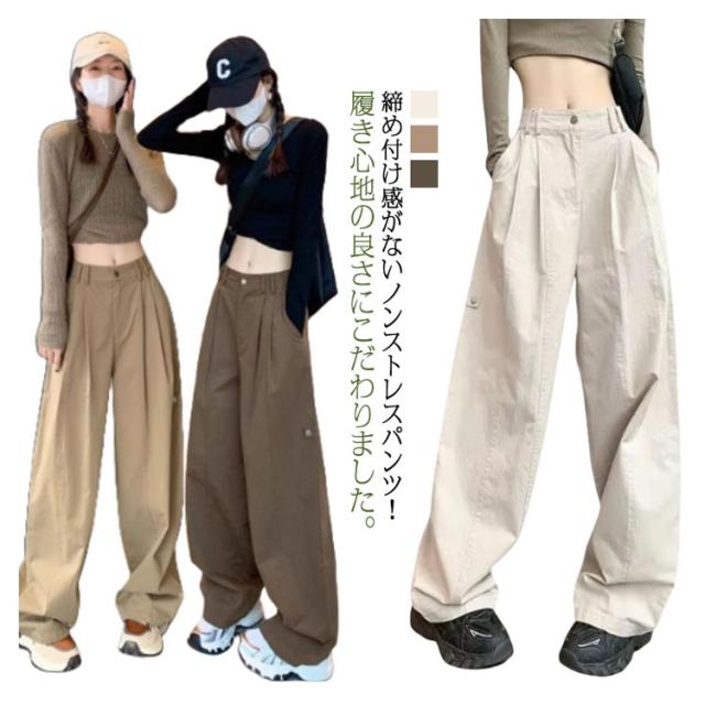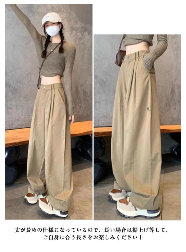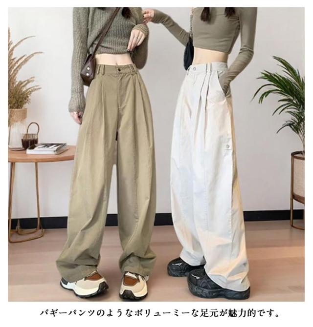 ロング ワイドパンツ ワイド チノパン パンツ ボトムス ワイドパンツ チノ パンツ カーゴパンツ ハイウエスト チノパンツ ストレートパンツ バギーパンツ ゴム ベイカーパンツ レディース 体型カバー 大きいサイズ ゆったり 着痩せ 春 秋