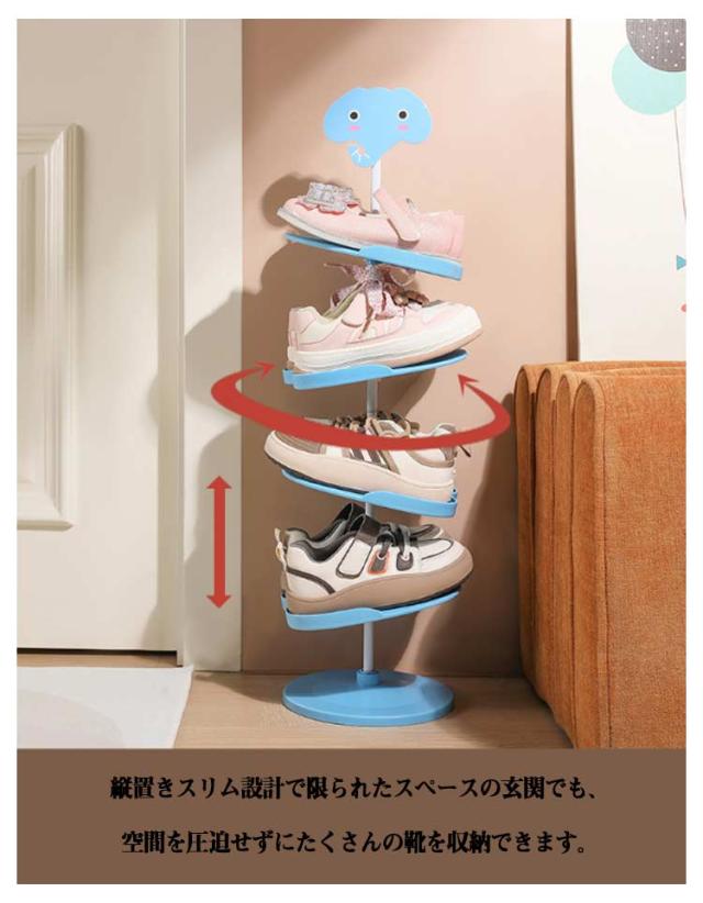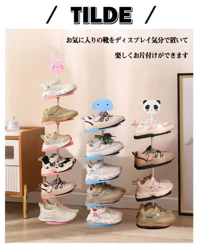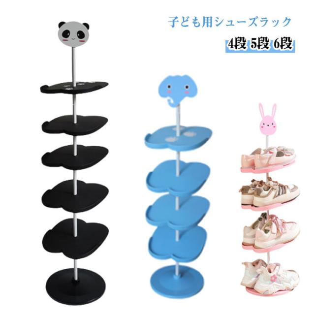 4段 シューズラック シューズ収納 6段 靴箱 5段 収納ラック 子供靴 子ども用 下駄箱 玄関収納 省スペース 子供用 ウサギ 靴 キッズ用 360℃回転 シューズボックス アニマル キッズシューズラック パンダ 動物 象 靴入れ おしゃれ かわいい