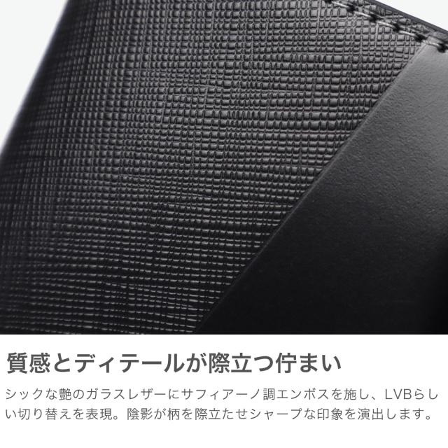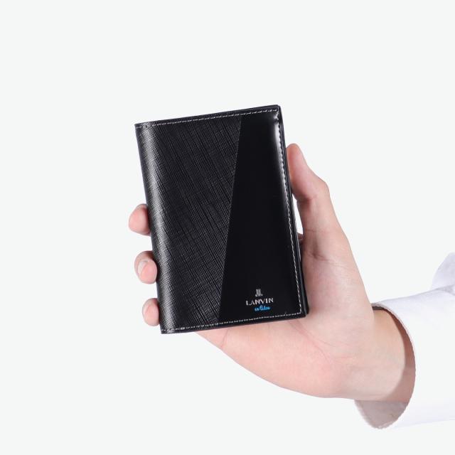 シックで上品な艶感が魅力のガラスレザーに部分的にサフィアーノ調のエンボス加工を施し、アパレル等で多用されるLANVIN en Bleuらしい切り替えを表現した『パーシャル』シリーズの二つ折り財布です。光をイメージしたメタリックブルーカラーを内装の一部分に使用することで、スタイリッシュで洗練されたデザインに仕上げています。大きく開いて見やすい小銭入れや豊富なカードポケットなど、機能性も充実。手に馴染むコンパクトなサイズ感で、日常使いにぴったりのアイテムです。