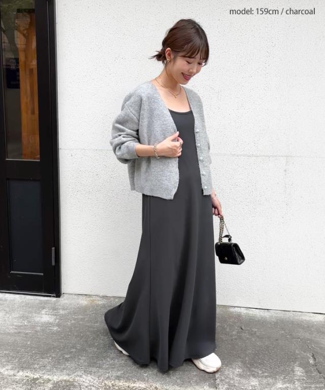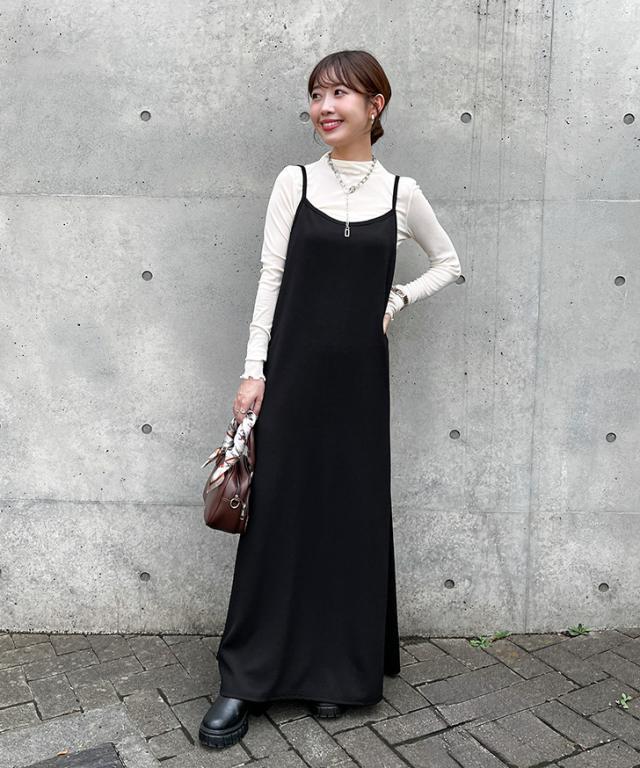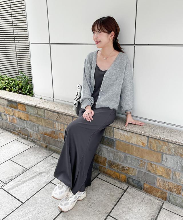 コメント:ヒールのない靴でも引きずらず、ちょうど良いマキシ丈で着用できました。身幅にもゆとりがあるので、快適な着心地です。