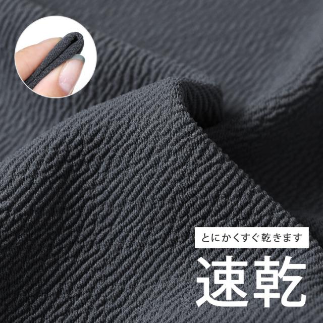 汗をかいても水に濡れても乾きやすい速乾エンボス素材で、