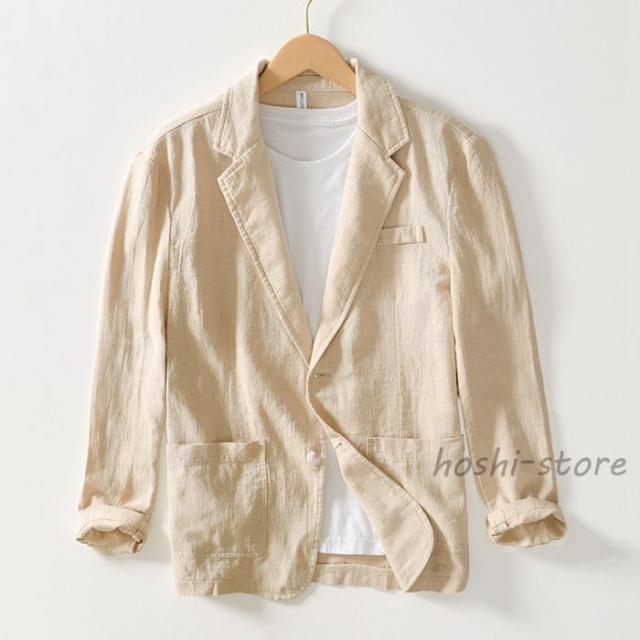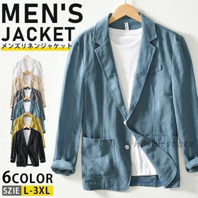 リネンジャケット メンズ 綿麻ジャケット 秋 テーラードジャケット ゴルフジャケット 長袖 父の日 大きいサイズ 夏ジャケット 2ツボタン クールビズ