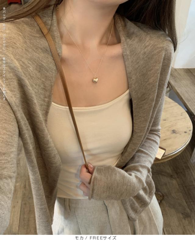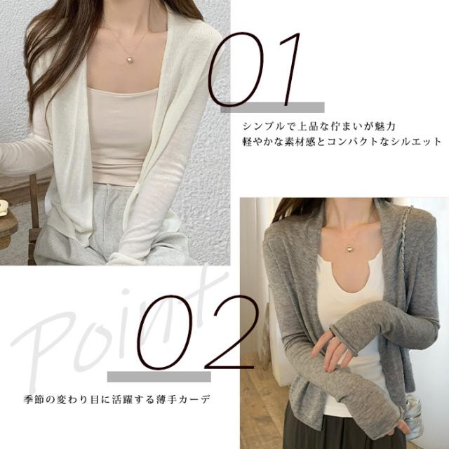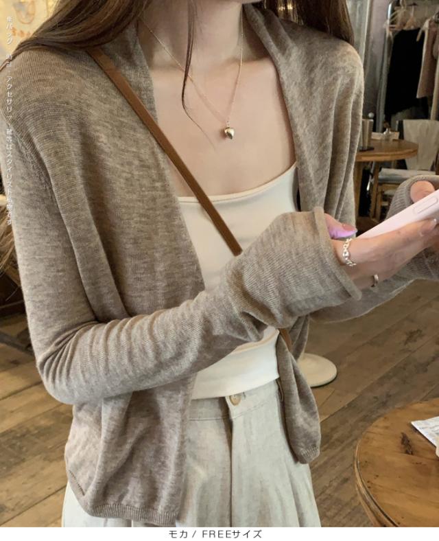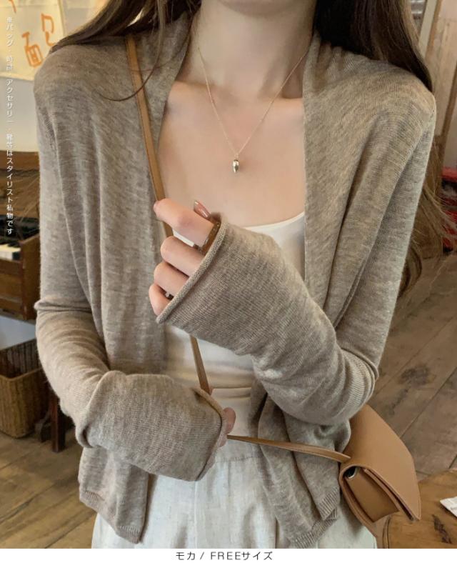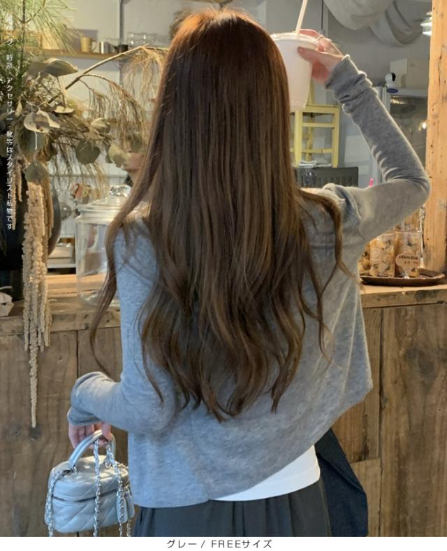 【ボタンレスカーディガン】 シンプルで上品な佇まいが魅力の、ボタンレスカーディガン。 軽やかな素材感とコンパクトなシルエットで、 春・秋はもちろん、冷房対策としても活躍する優秀アイテム。 さっと羽織るだけでこなれ感が出せて、 カジュアルにもオフィススタイルにも幅広く対応します。 《商品ポイント》 指先が隠れる長めスリーブや、 自然なドレープが生まれる開放的な前立てなど、 着るだけで抜け感のあるスタイルが完成します。 きれいめにもカジュアルにも使える、 デイリーに頼れる羽織りアイテムです。 《デザイン・シルエット》 ボタンのないオープン仕様で抜け感たっぷり 袖口までたゆむロングスリーブで華奢見え コンパクトに見えるすっきりシルエット 長袖だから冷房対策や秋口の軽羽織にも◎ 《コーディネート提案》 タンクトップやキャミソールの上にさらっと羽織って ワンピースの上に合わせて、冷房&季節の変わり目に デニムやフレアパンツと合わせてカジュアルに きれいめスラックスと合わせてオフィススタイルにも 《サイズ・カラーバリエーション》 サイズ:FREE カラー:ホワイト/グレー/モカ 《素材・機能性》 ・素材:ポリエステル100% ・透け感:あり ・伸縮性:あり(優しくフィット) ・厚み:薄手(春〜秋に◎) |