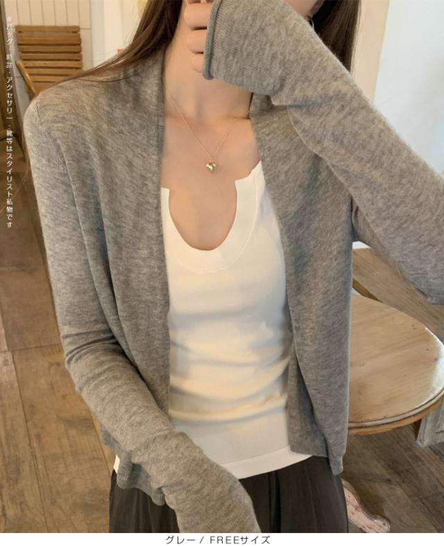 シンプルで上品な佇まいが魅力の、ボタンレスカーディガン。