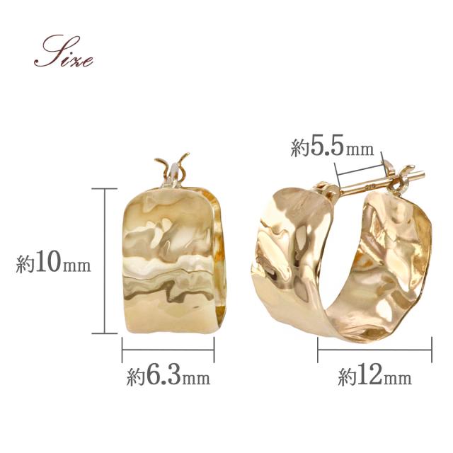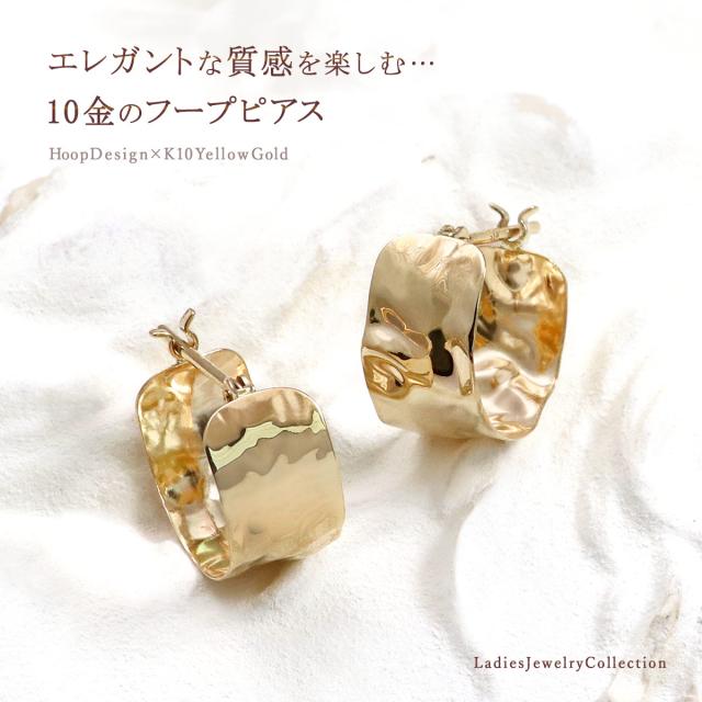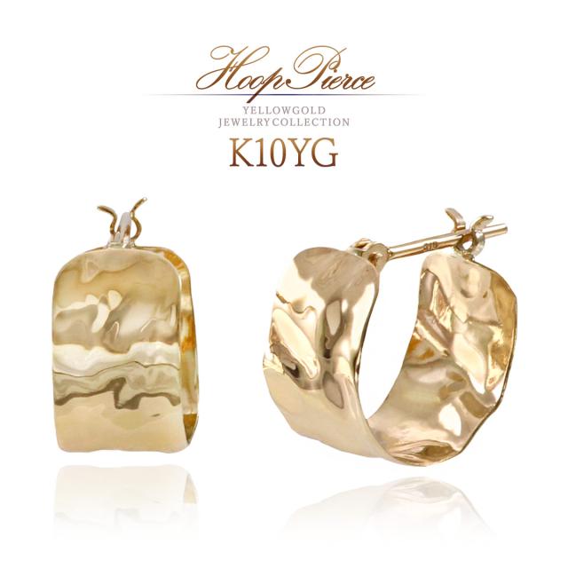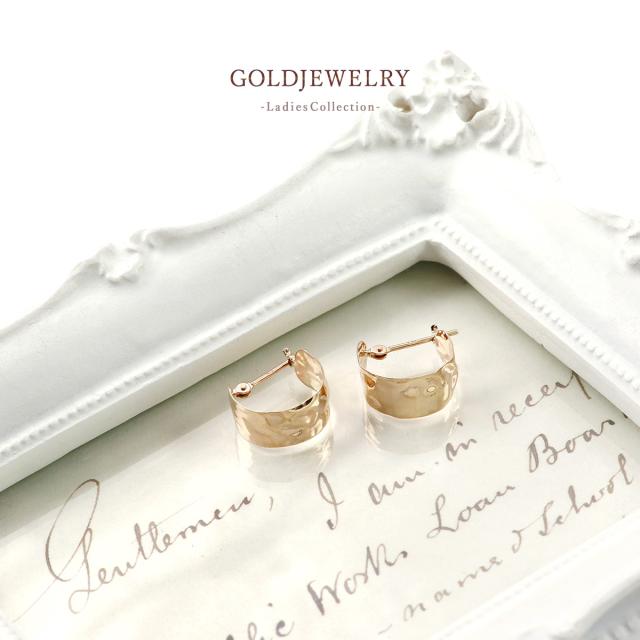 フープピアス 大きめ ゴールド シンプル 幅広 大き目 おしゃれ レディース 10K イエローゴールド 10金 K10 プレゼント 記念日 誕生日 地金のみ 地金だけ アクセサリー フープ ピアス リングピアス 槌目 凹凸 模様 地金ピアス 女性 彼女 妻 本物 K10YG 母の日 ギフト 2026
