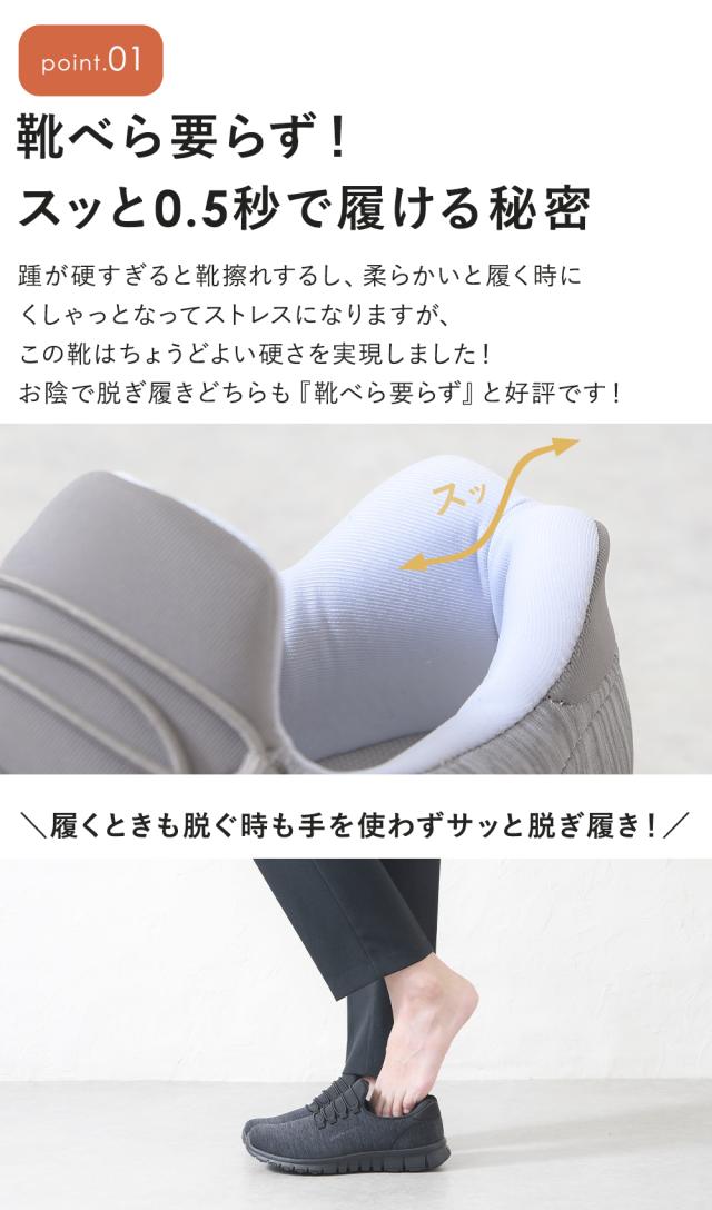 手を使わずに履ける靴 レディース 立ったまま履ける靴 介護靴 介護シューズ スリッポン スニーカー 室内シューズ 柔らかい 歩きやすい 立ち仕事 疲れない 履きやすい 軽い 室内 外履き 通勤 大きいサイズ 黒 ブラック 敬老の日 プレゼント