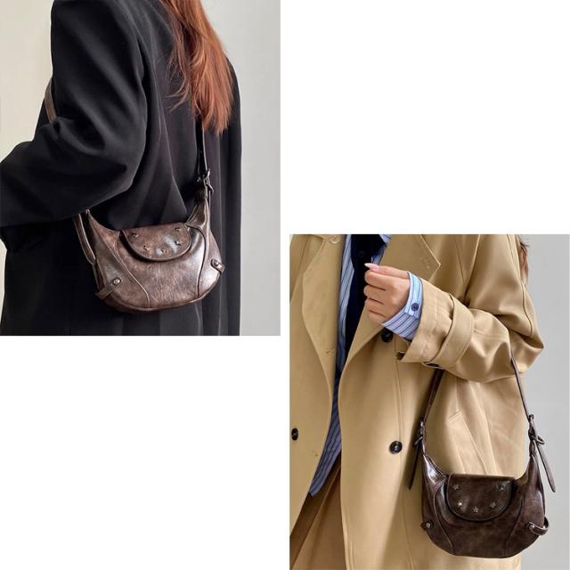 全品送料無料一部除く スタースタッズ PUレザー ワンハンドルバッグ【即納】韓国っぽ 韓国バッグ アーバンパンク カバン かばん 斜め掛けバッグ 肩掛けバッグ ラウンドバッグ 2way レトロ レディース 韓国 Y2Kファッション 韓国ストリート 流行り トレンド かわいい