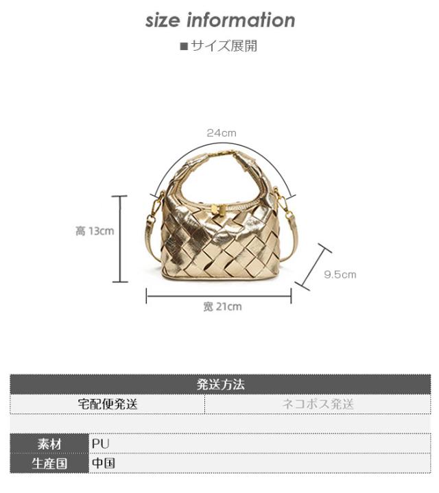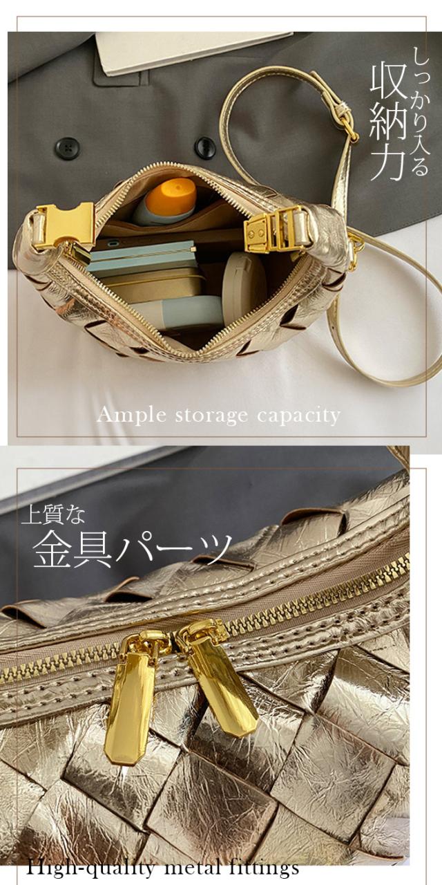 【2wayハンドバックルウーブンバッグ】 上品な光沢と編み込みデザインが 特徴の2WAYハンドバッグ。 ハンドル持ちとショルダー持ちの 2通りで使える多機能デザイン。 コンパクトながら必要な荷物をしっかり収納でき、 デイリーからパーティーまで幅広く活躍します。 ブラック・ゴールド・シルバー・シャンパンの4色展開で、 コーディネートを華やかに演出します。 軽量PUレザー素材で扱いやすく、長時間の持ち運びも快適です。 |
