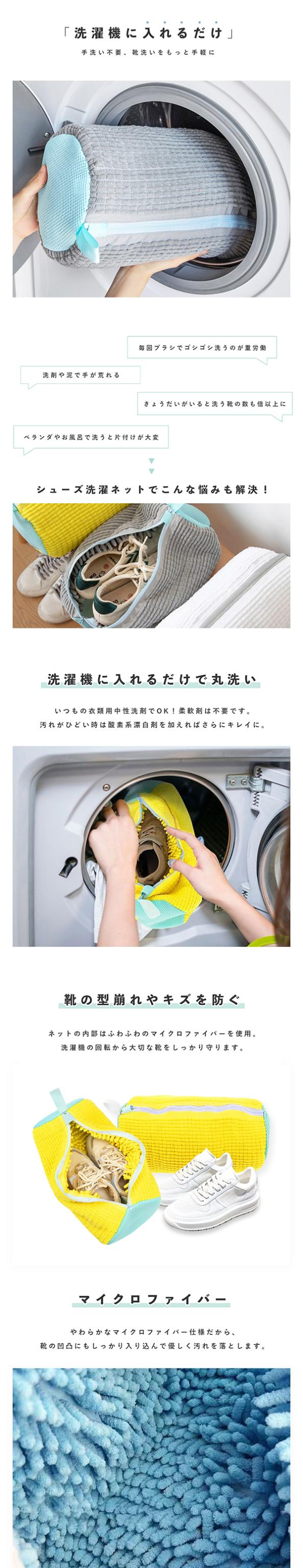靴 洗濯ネット スニーカー 上履き 洗濯機用 シューズ 洗濯袋 クッション付きネット マイクロファイバー 大人 子供兼用 洗える ネット 靴用ネット そのまま洗濯機OK 靴の型崩れ防止 ネット付き 洗濯グッズ 便利グッズ 干せるループ付き 通学 通園