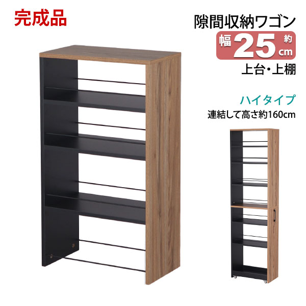 隙間 ラック 上台のみ 完成品 幅25cm 奥行45cm 高さ80cm キッチン 隙間収納 洗面所 すきま収納 脱衣所 すき間収納 冷蔵庫横 洗濯機横 おしゃれ キッチンラック 木製 調味料ラック 細い スリムラック ブラック×ブラウン ※別途下台が必要です※ AHSW-250T
