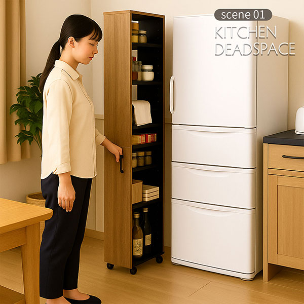 ・キッチンボードや冷蔵庫脇の隙間収納に