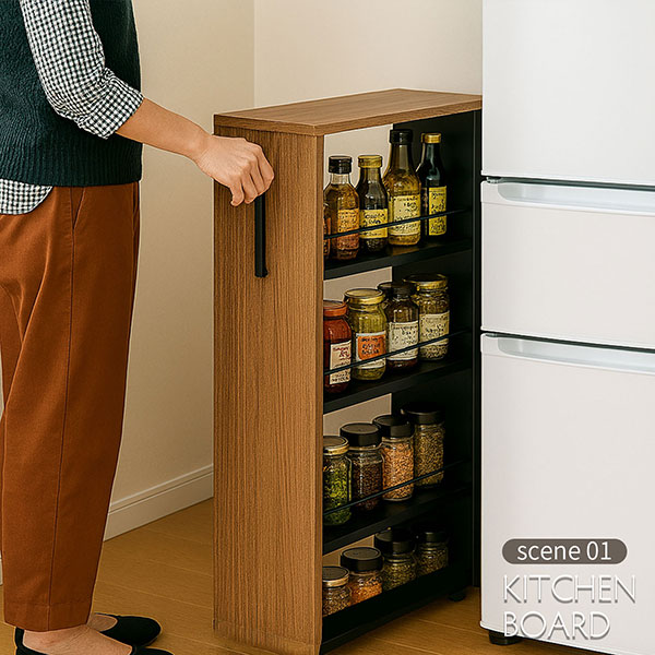 ・キッチンボードや冷蔵庫脇の隙間収納に
