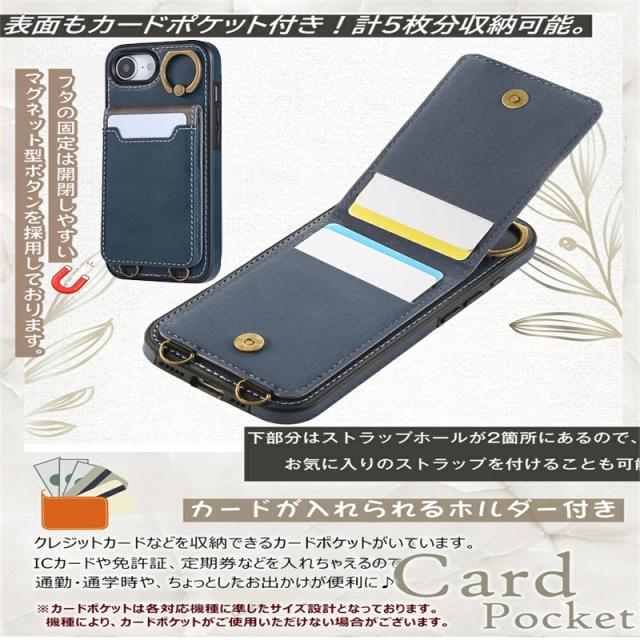 iphone se2ケース ハンドストラップ リング付き スマホケース iphone se3 ケース 背面カード収納 iPhone16 iPhone14 iPhone13 カード ケース 高級 レザー icカード ポケット 背面 アイフォンSE 第2世代 アイフォンSE 第3世代ケース メンズ レディース かわいい おしゃれ