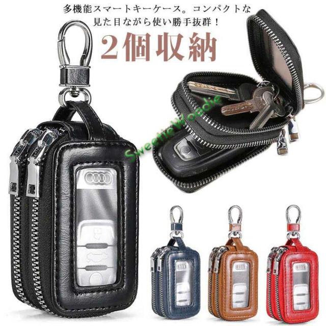 2個収納 コンパクト 軽量 2個収納 スマートキーケース レディース キーケース クリア窓 メンズ 財布 キーホルダー 車 スマートキーカバー 革 複