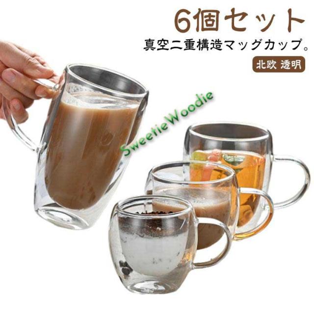 【6個セット】ガラスコップ 保冷 ダブルウォールグラス マッグカップ 350ml カップ 取手付き 北欧 二重グラス 二重グラス グラス 250ml