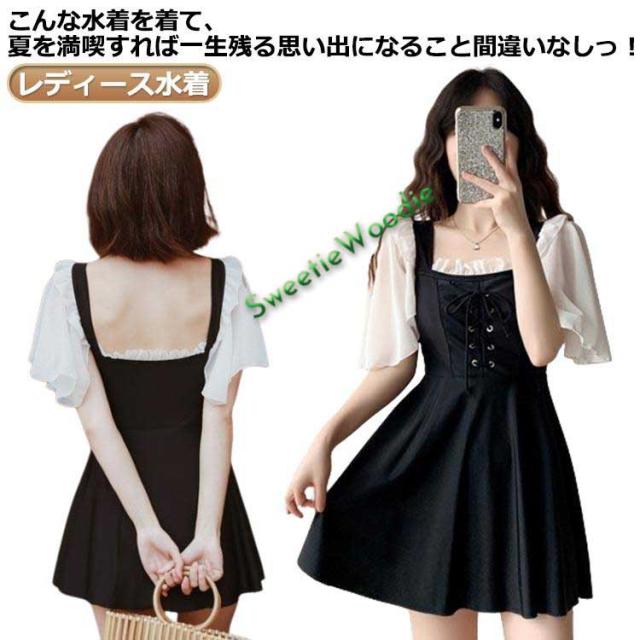 水着 可愛い 海 ぽっちゃり 体型カバー 水着 水陸両用 半袖 中学生 レディース水着 女性 タンキニ 黒 水着 ワンピース スイムウェア 韓国 海水