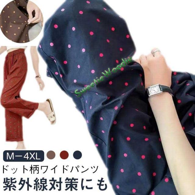 ドット柄パンツ 夏 レディース ストレートパンツ 速乾パンツ ワイドパンツ ドット柄パンツ パンツ 涼感 夏用 大きいサイズ ゆったり M?4XL