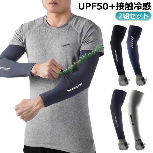 | 2組セット UPF50 ?接触冷感 UVカット率98%、接触冷感 UPF50 、暑い日のスポーツシーンに最適なメンズアームカバー | |