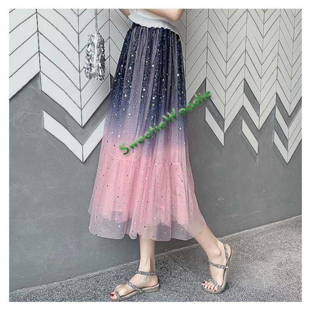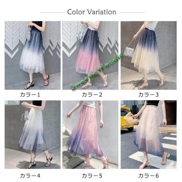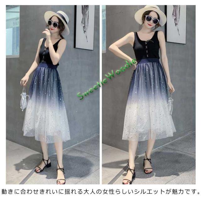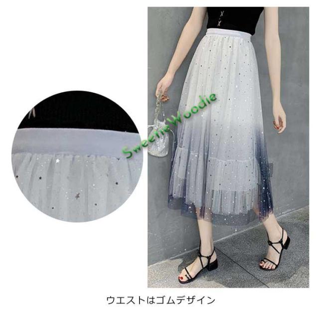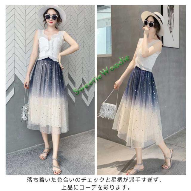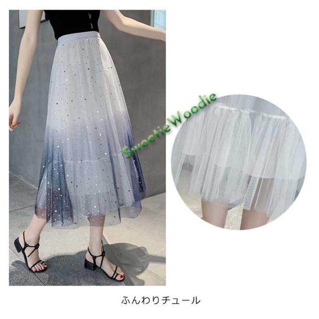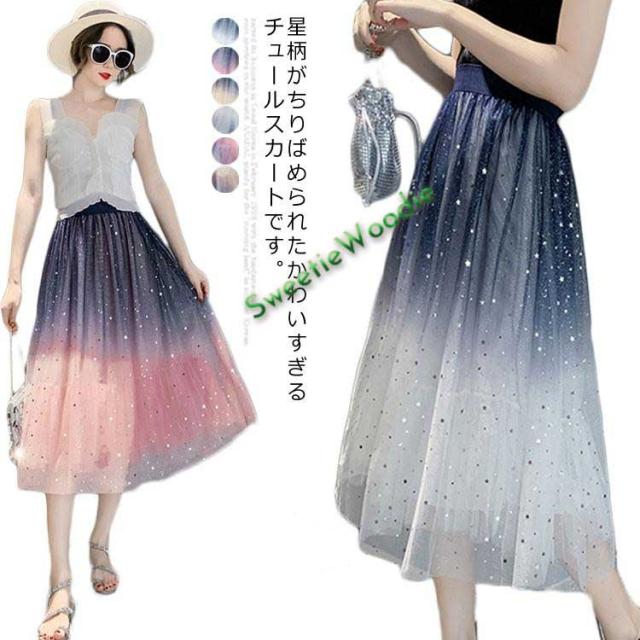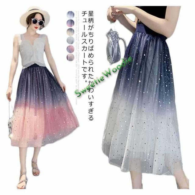 《送料無料》チュールスカート 星チュール ロングスカート レディース 星柄 ボトムス グラデーション ミモレ丈 レース フレア 大人 スカート 裏地あ