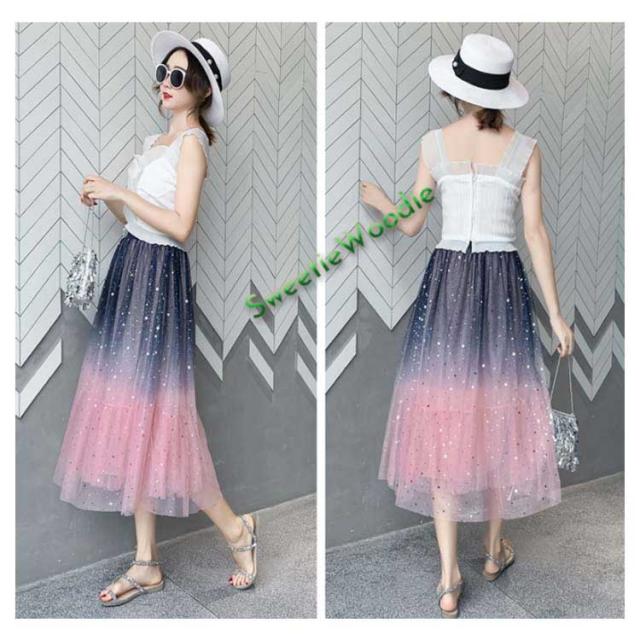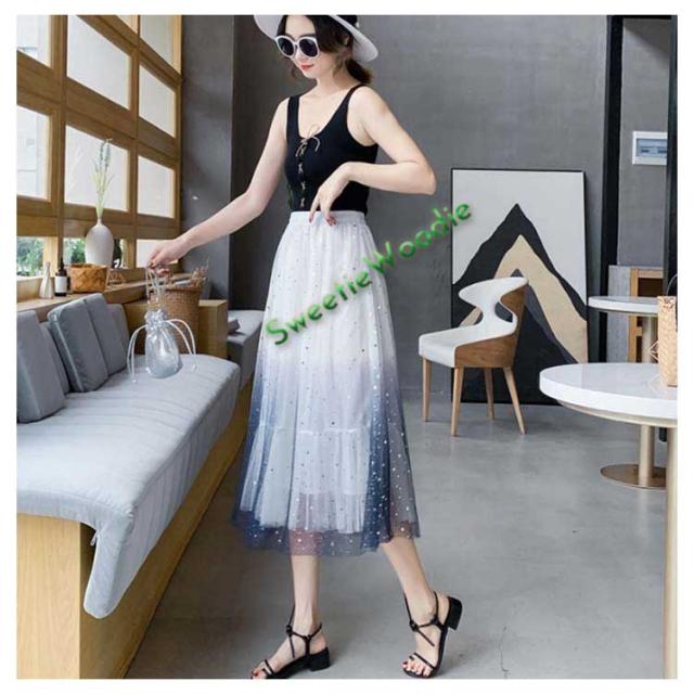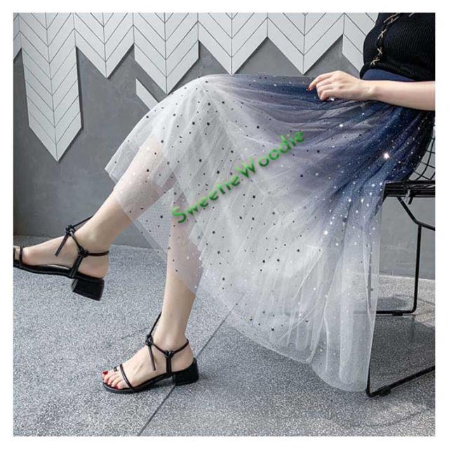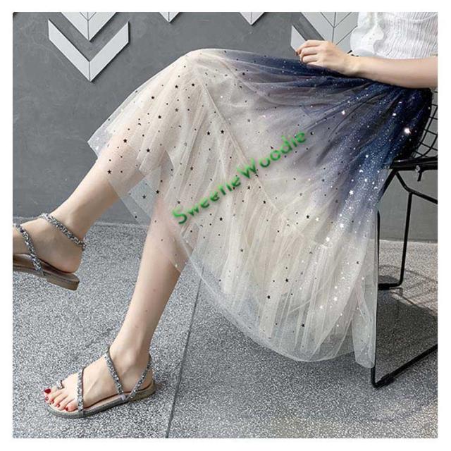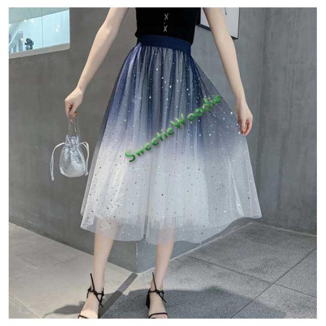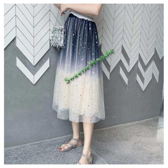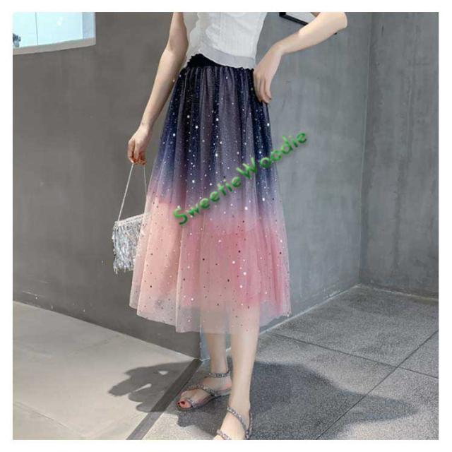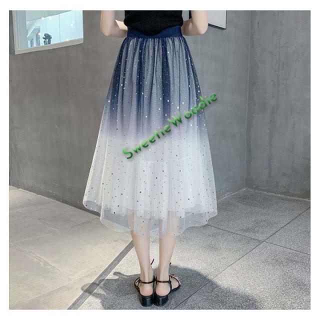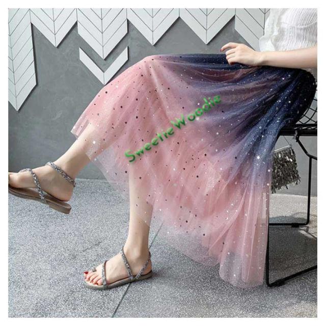 《送料無料》チュールスカート 星チュール ロングスカート レディース 星柄 ボトムス グラデーション ミモレ丈 レース フレア 大人 スカート 裏地あ