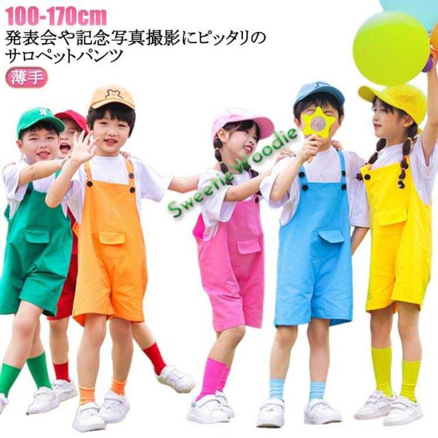 オーバーオール キッズ服 カラフル サロペット 薄手 男の子 おしゃれ カラーパンツ ダンス衣装 夏用 ダンス ヒップホップ 入学式 女の子 ジュニア