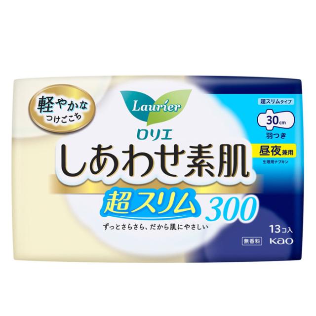 [花王]ロリエ しあわせ素肌 超スリム300 昼夜兼用 羽つき 30cm 無香料 13個入り(生理用 ナプキン 通気性 さらさら)