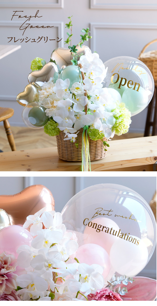 開店祝い 胡蝶蘭 花 バルーン 開業祝い お祝い プレゼント 緑 ピンク イエロー 造花 開店祝いバルーンアレンジ