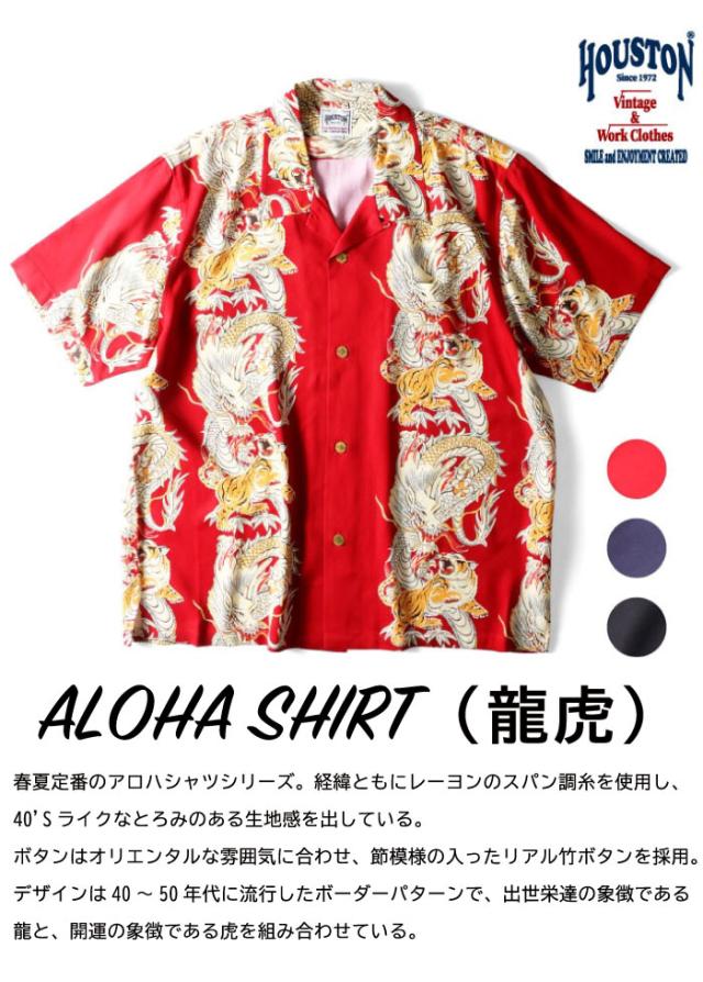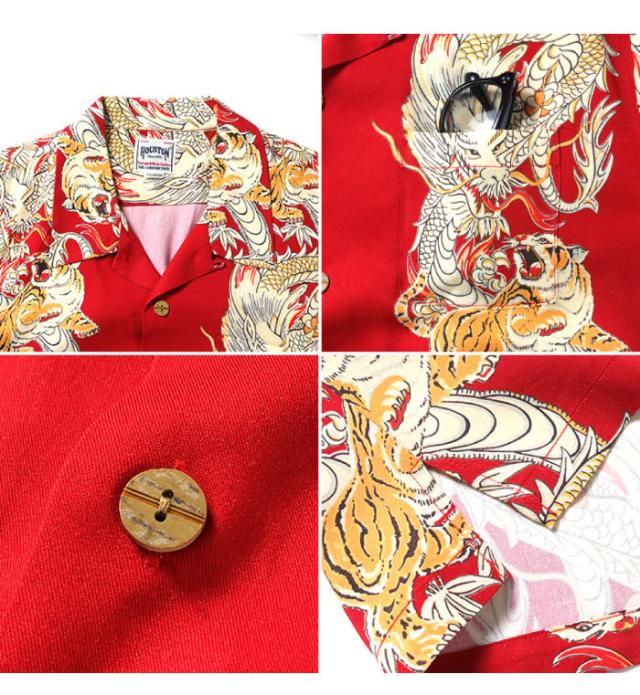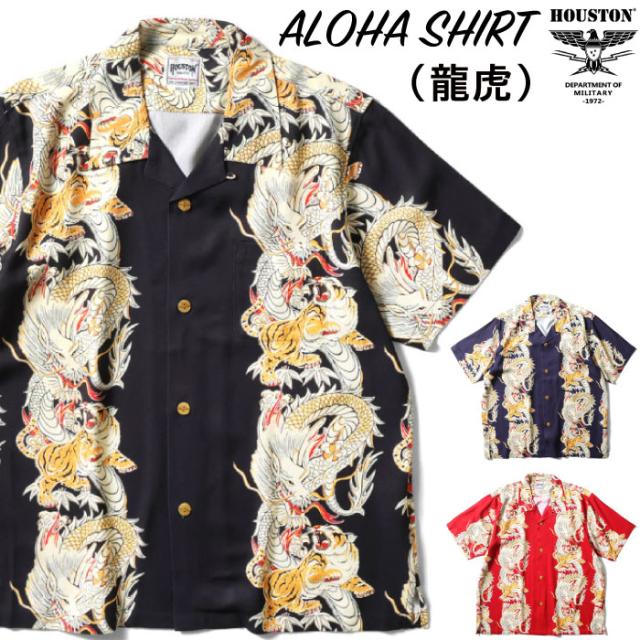 Houston ヒューストン アロハシャツ (龍虎) 半袖シャツ メンズ レディース 開襟 和柄 レーヨン 龍 虎 ボーダーパターン レーヨン カジュアル アメカジ 41196 SALE メール便対応