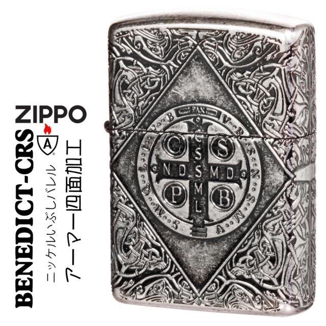 クリスマス zippo ジッポーライター アーマー ZIPPO Armor ベネディクトクロス ニッケルイブシバレル 4面エッチング加工 BDT-CRS-NIB 十字架 信仰 かっこいい オシャレ メンズ アンティーク ギフト プレゼント 送料無料 メール便対応