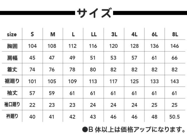 サイズ:S、M、L、LL、3L、4L、6L、8L