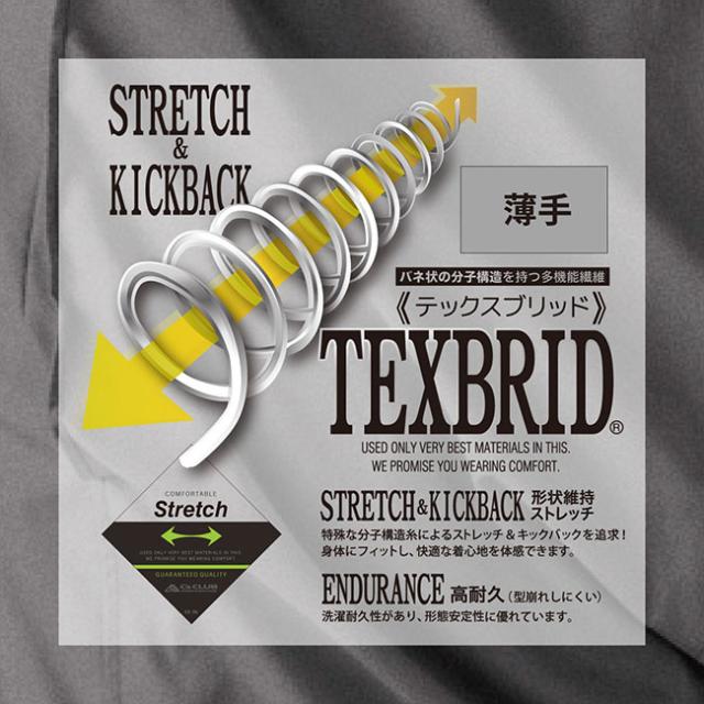 生地の横糸には、特殊な分子構造によってストレッチ性を持つ「TEXBRID」を使用、体の動きに合わせて伸縮する機動力と快適な着心地を可能にした次世代の定番ワークウェア。