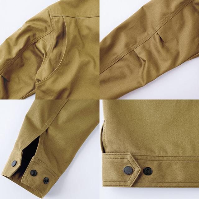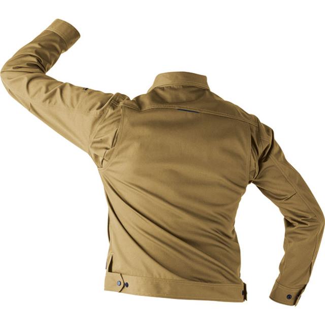 ストレッチ生地をベースに、ジャケット背面にはノーフォークを、肘膝にはタックやダーツを備えることで動きやすさを向上させています。