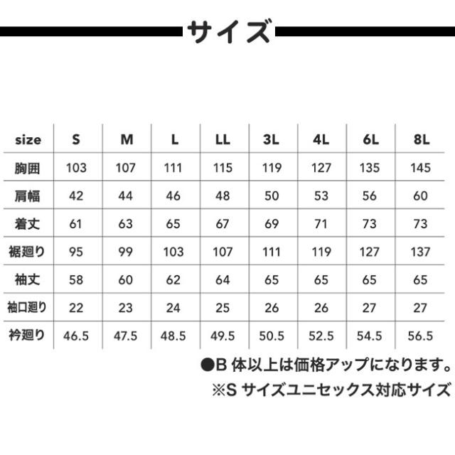 サイズ:S、M、L、LL、3L、4L、6L、8L