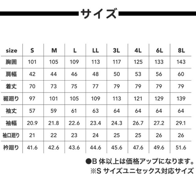 サイズ:S、M、L、LL、3L、4L、6L、8L