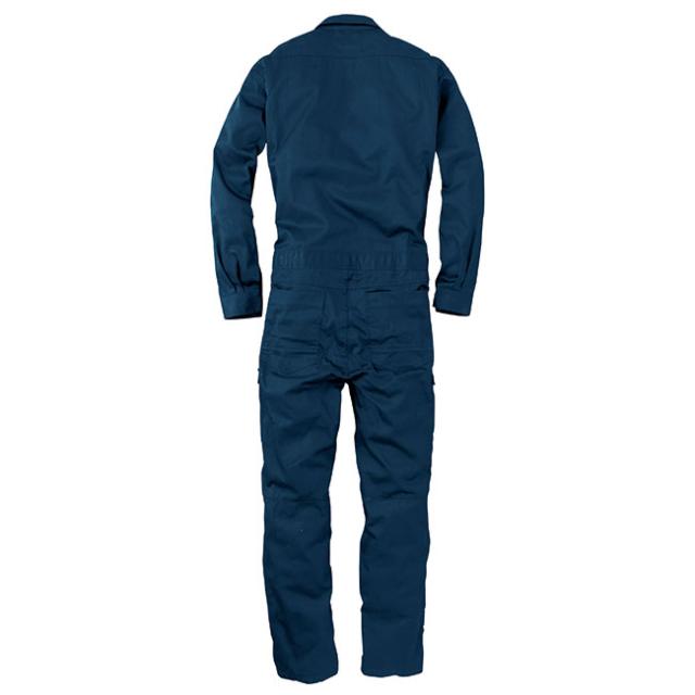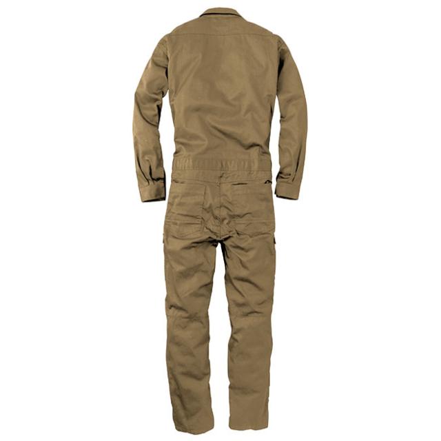 厚手のコットンツイル生地を用い、ユーザー要望が多い胸ポケットのファスナーを両胸に備えたプロスペックモデル。作業性を損なわないよう脇下立体裁断と背中のアクションプリーツを搭載し、膝の3Dカットに開脚がスムーズなクライミングカットも採用。収納面でも抜かりはなく、太腿部分にはマチ付きのカーゴポケットを設けており、全てが一つに詰まった、まさにオールインワンな仕様。過酷なワークシーンに耐えうる本格派のツナギです。