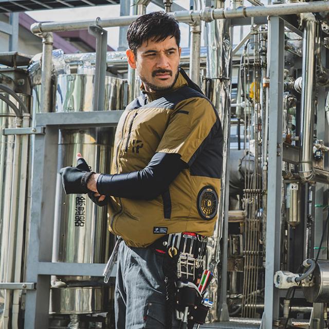 遮熱性やUVカットに優れた裏チタンコーティング半袖ジャケット。