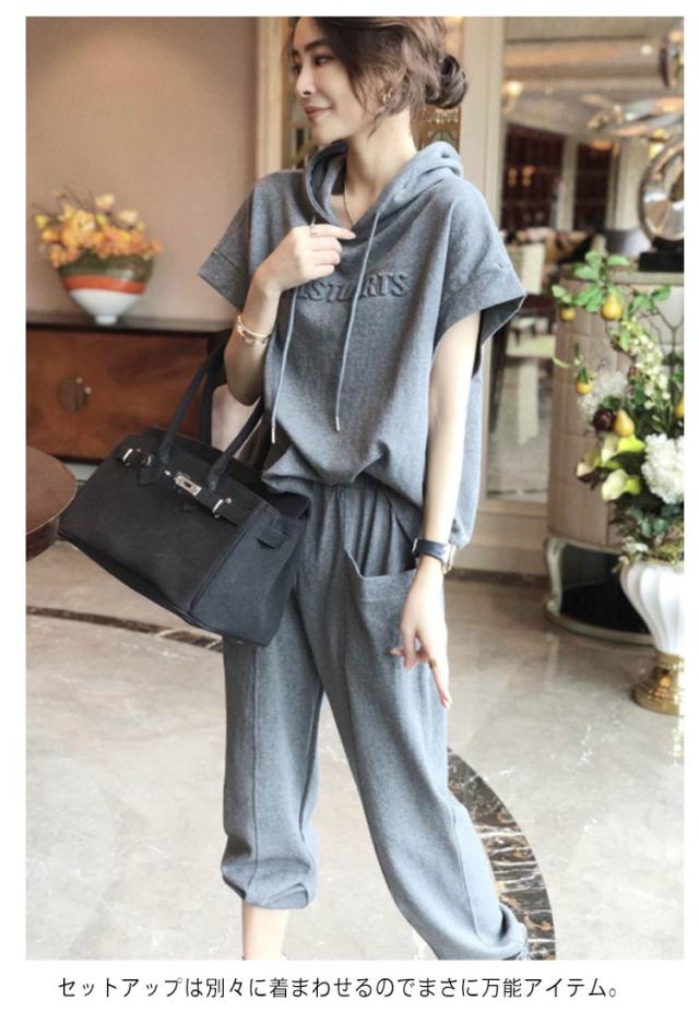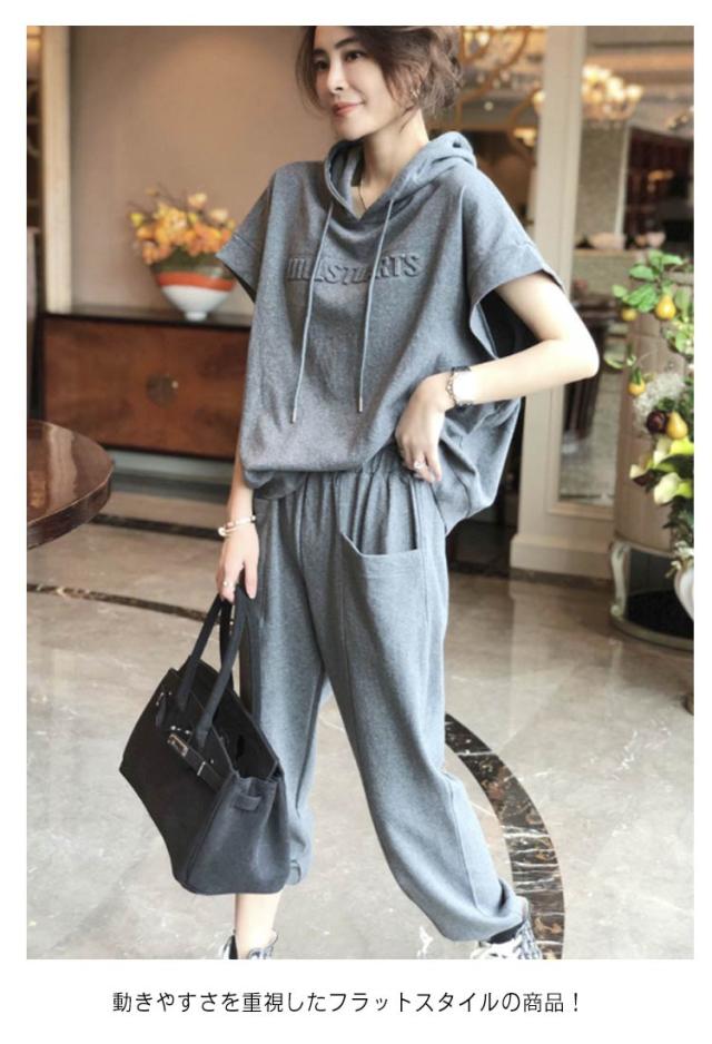 大きいサイズ ジャージ セットアップ 上下セット 部屋着 ジョギング トップス セットアップ 無地 半袖 ルームウェア スウェットパンツ 大きい 薄手 グレー レディース 旅行 スポーツウェア パンツ 春 夏 秋 冬 パーカー ヨガ 運動着 ダンス