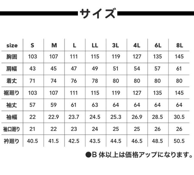 サイズ:S、M、L、LL、3L、4L、6L、8L
