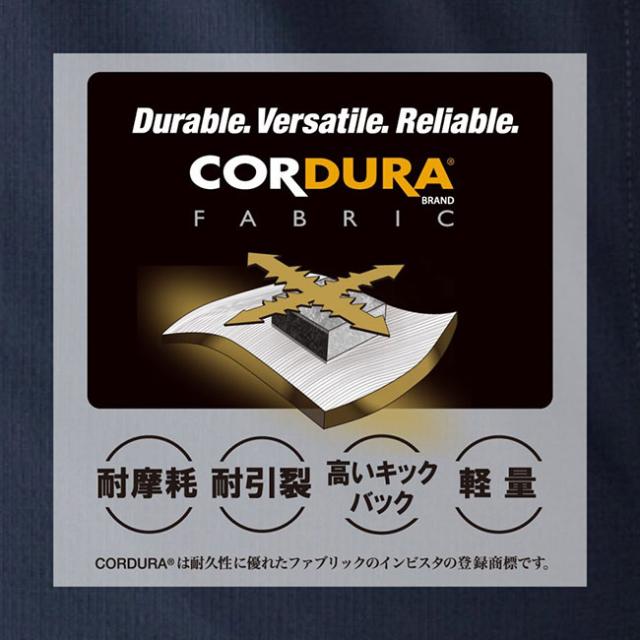米国インビスタ社のCORDURAファブリックが全面に使用された同シリーズから、立体フォルムが特徴のフーディーがあるジャケットが登場。耐摩擦や耐引裂に優れながらも軽量であり、2WAY120%のストレッチ性能は作業時にストレスを感じない動きやすさがあります。両脇ポケットのほか、左側胸ファスナーポケット、袖ペン差しポケット、内側ポケットの収納も備えています。フード口、両裾には絞りを調整できるストッパー付きのアジャスター仕様。