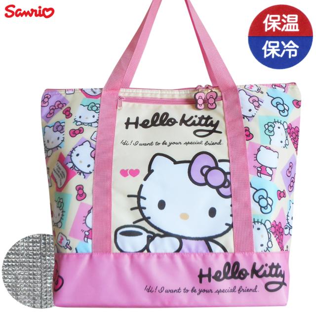 送料無料 保冷 保温 キティちゃん ハローキティー トートバッグ ピンク イエロー ショッピングバッグ レジカゴバッグ エコバッグ 総柄 レジバッグ ウェットティッシュケース付 おしゃれ スーパー 買い物バッグ 軽量 ウレタン BBQ キャリーバッグホルダー付 便利