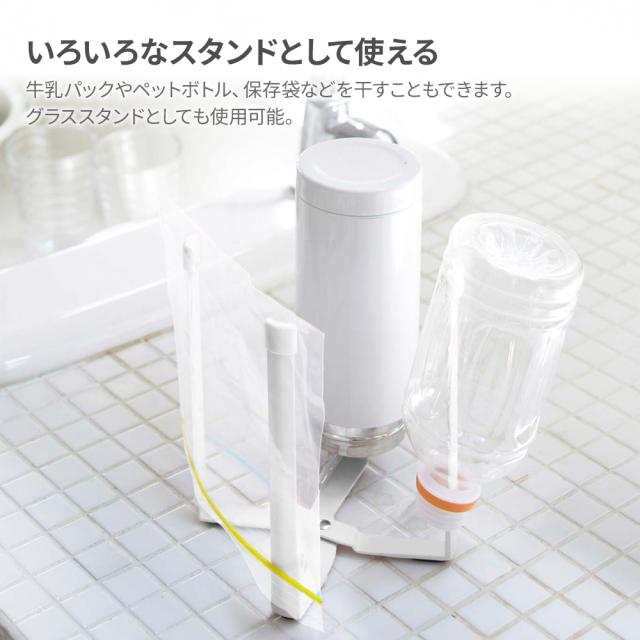 牛乳パックやペットボトル、保存袋などを干すこともできます。グラススタンドとしても使用可能です。