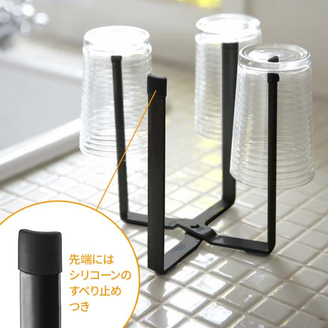干す部分の先端にはシリコンのキャップがついており、グラスなどを置いた際も傷つけず、滑りません。